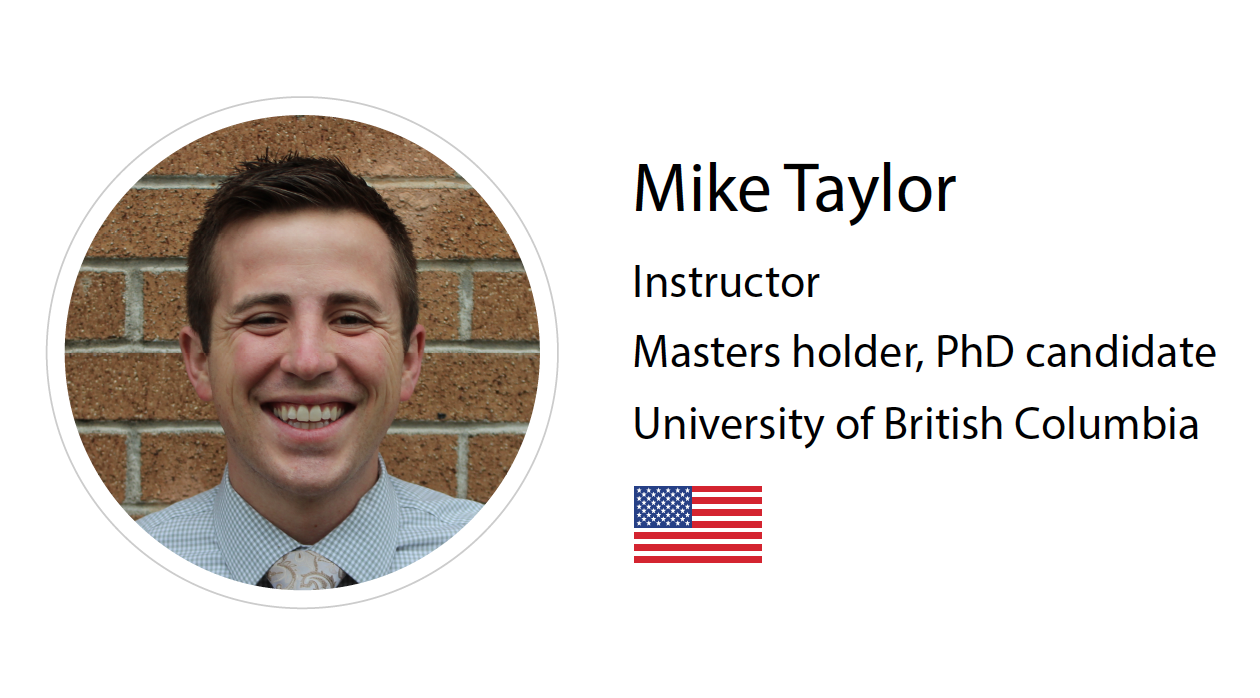 Overall, Mike is passionate about developing and teaching courses that encourage generative student-to-student interaction, invite critical thinking, and ensure English mastery in order to help students take advantage of the prestigious academic and professional opportunities open only to advanced English speakers.